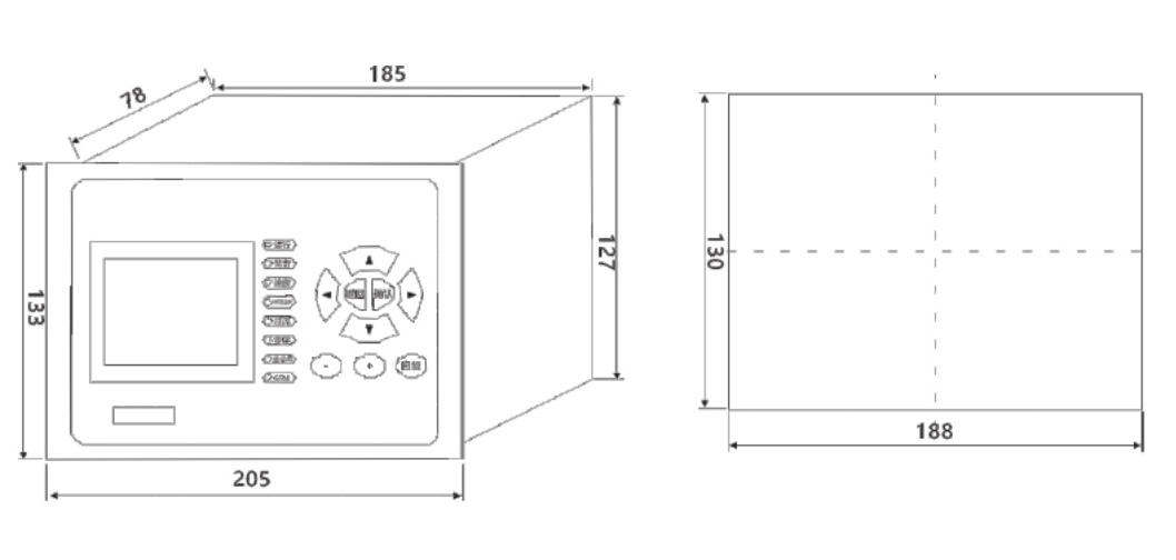 功率消耗:交流电流回路 小于0. 5VA/相开关量输入“开关量额定电压为DC24V(由装置内部提供)