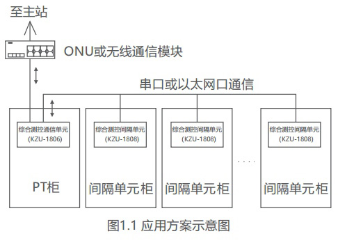 其中综合测控通信单元(KZU-1806)负责汇集各保护测控间隔单元(KZU-1808) 遥信数据、遥测数据、保护事件、录波数据、运行状态、电能量数据等相关信息,按照转发点表上传遥信、遥测信息至配电自动化主站,执行配电自动化主站下发的遥控命令,或将遥控命令转发至相应保护测控间隔单元(KZU-1808)执行。